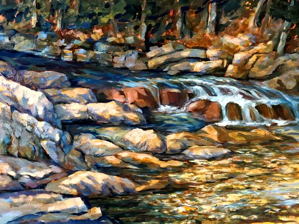 This was the 2nd in a series of New England Waterfalls I painted in 2024 after a trip through New England in 2023.